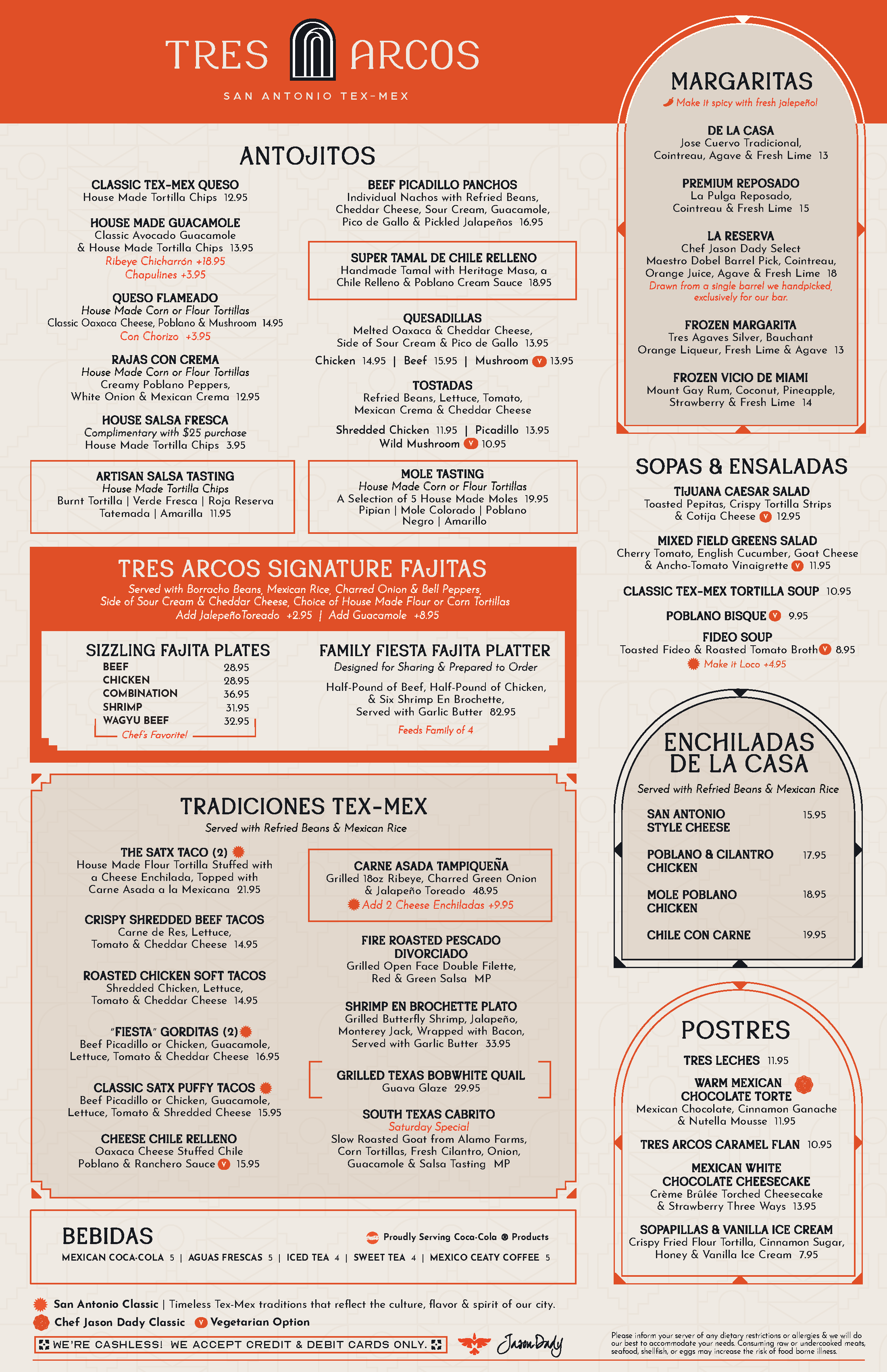 Built for the table, Tres Arcos offers a setting made for gathering—bold Tex-Mex plates, warm hospitality & space to settle in together.